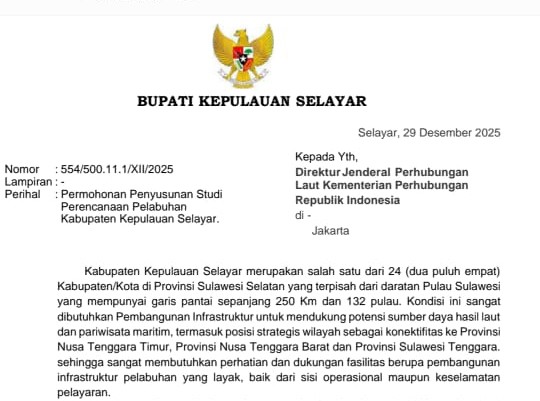 Pemerintah Kabupaten Kepulauan Selayar mendorong dilakukannya studi perencanaan pelabuhan sebagai langkah awal mewujudkan pelayanan transportasi laut yang layak, aman, dan mendukung pertumbuhan ekonomi wilayah kepulauan.
