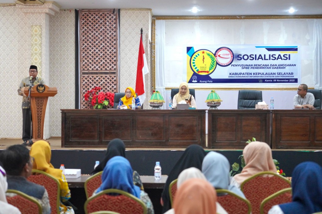 KEPULAUAN SELAYAR — Pemerintah Kabupaten Kepulauan Selayar melalui Dinas Komunikasi, Informatika, Statistik dan Persandian (Kominfo SP) Bidang Aplikasi Informatika (Aptika) menggelar Sosialisasi Penyusunan Rencana dan Anggaran Sistem Pemerintahan Berbasis Elektronik (SPBE) Pemerintah Daerah, Kamis (6/11/2025) siang, di Ruang Pola Kantor Bupati Kepulauan Selayar.